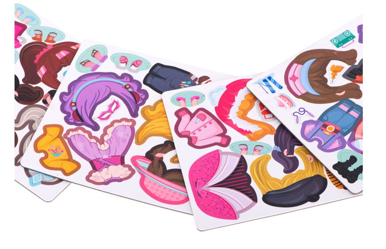 Kelių elementų magnetinė dėlionė dėžutėje su lėlių detalėmis.