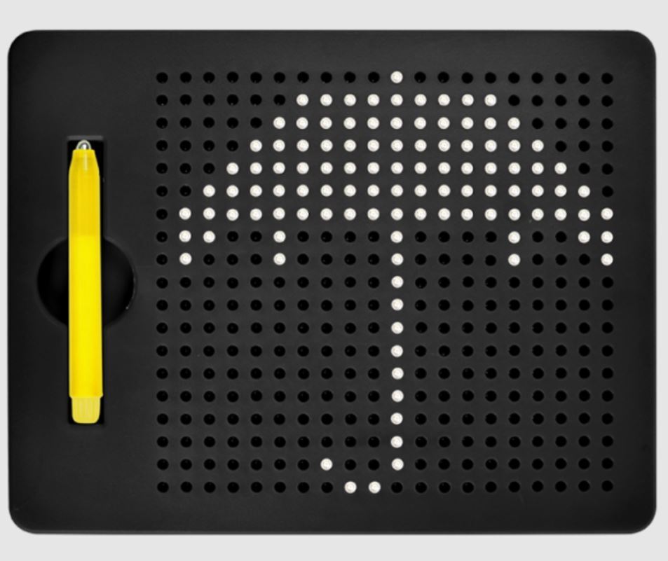 šis unikalus žaislas yra puikus bdas sustabdyti nuoboduli! Galite piešti ant jo kaip ant popieriaus lapo. Vaikui pakanka rašikliu paliesti atitinkamą skylutę, ir lentos viduje esantis rutulys pakils ir užpildys skylę. Žaislo naudojimas taip pat labai prisideda prie aplinkos apsaugos. Jums nereikia nuolat pirkti piešimo reikmenu – tereikia naudotis lenta.