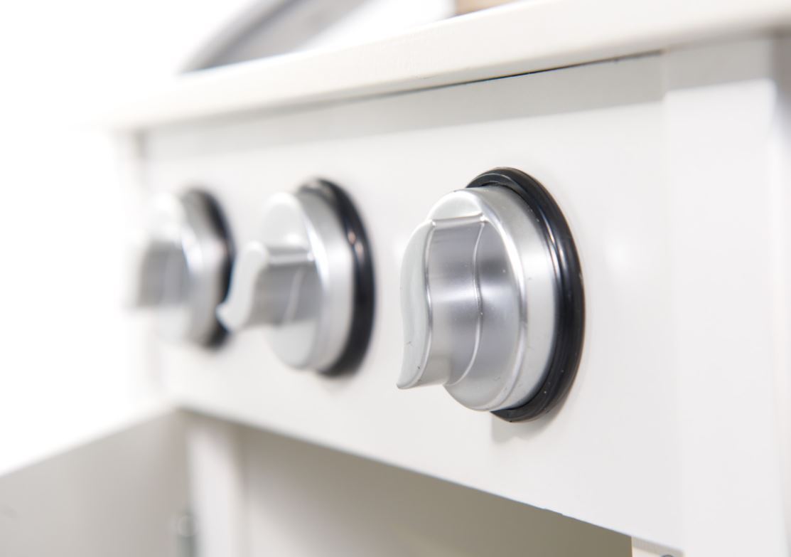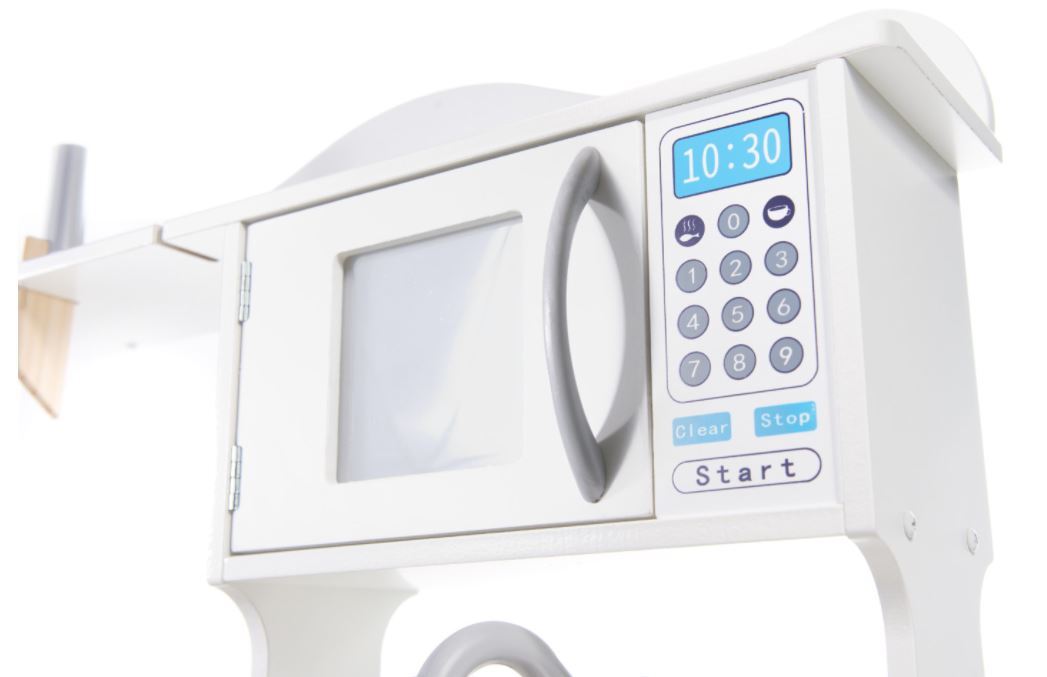 Virtuvėje taip pat yra (nuimama) kriauklė su čiaupu ir rankenėlėmis. Tai padės paaiškinti, kaip svarbu turėti pakankamai darbo vietos ir kad valymas po to yra toks pat svarbus kaip ir valgio ruošimas. Tai gali būti įvadas, kaip paaiškinti jūsų mažyliui namų ruošos darbus.