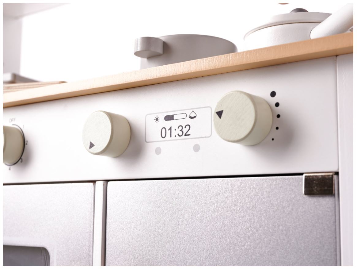 Virtuvę labai lengva sutvarkyti, ji puikiai tiks vaikų kambariui ar žaidimų kambariui. Tai žavi savo estetika! Dėl švelnių spalvų jis derės prie bet kokio interjero.