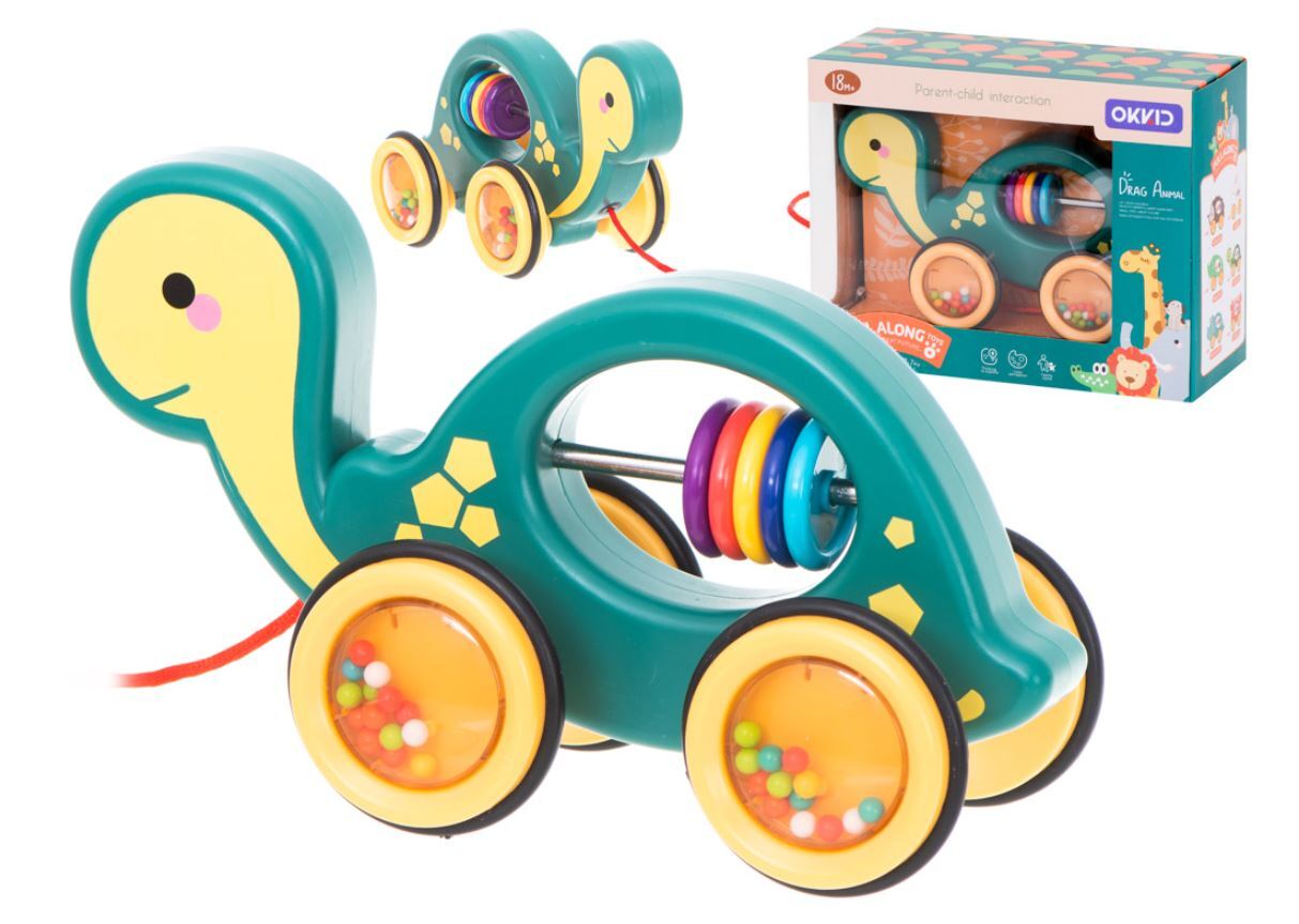 Prie barškučio pritvirtinta ilga virvelė, kuri leidžia patogiai ją užtraukti už savęs! Dėl šios priežasties vėžlys gali būti išvežtas į ilgą pasivaikščiojimą ir puikius nuotykius!