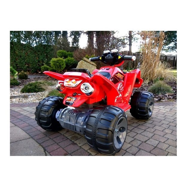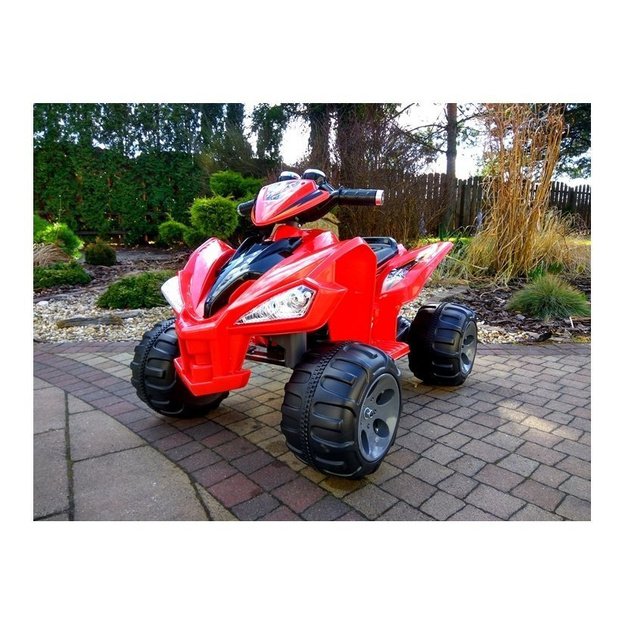 Naujasis raudonos spalvos keturratis varomas 12V7Ah akumuliatoriumi ir 2x45W varikliu. Džipas pasižymi moderniu ir laukiniu dizainu. Jis turi dvi pavaras pirmyn ir atgal, bet taip pat automatinį stabdymą atleidus dujų pedalą.