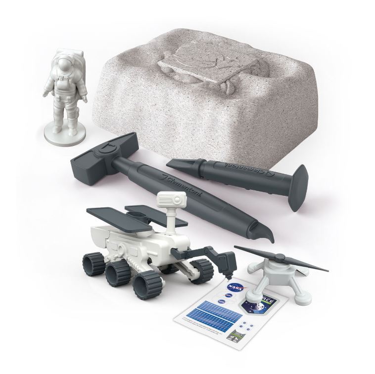 Rinkinyje yra gipso blokas, plaktukas ir kaltas erdvėlaiviui kasti ir atkasti, nusileidimo aparatas, astronautas ir meteorito uolienos fragmentas.