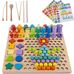 Įdomus medinis mokomasis edukacinis žaislas. Rūšiavimo pagrindą sudaro spalvoti skaičiai, raidės ...