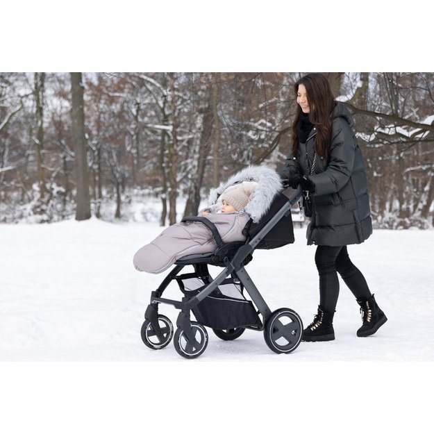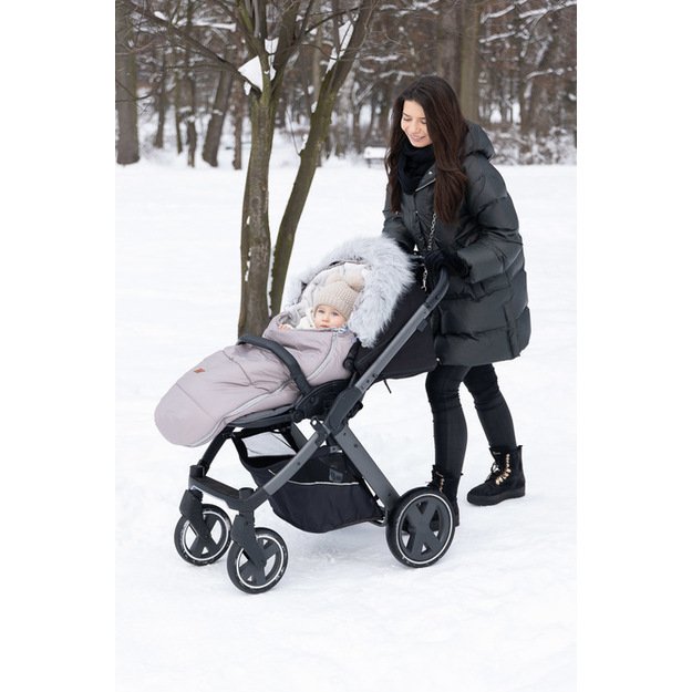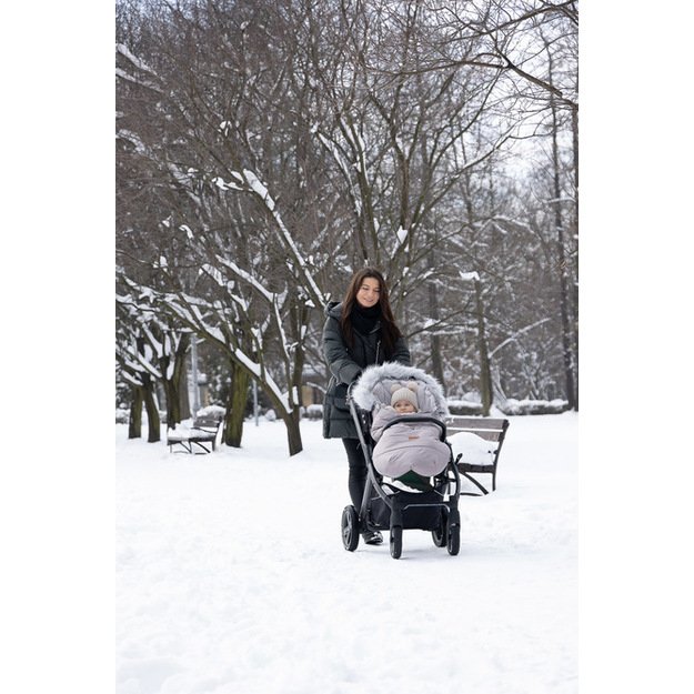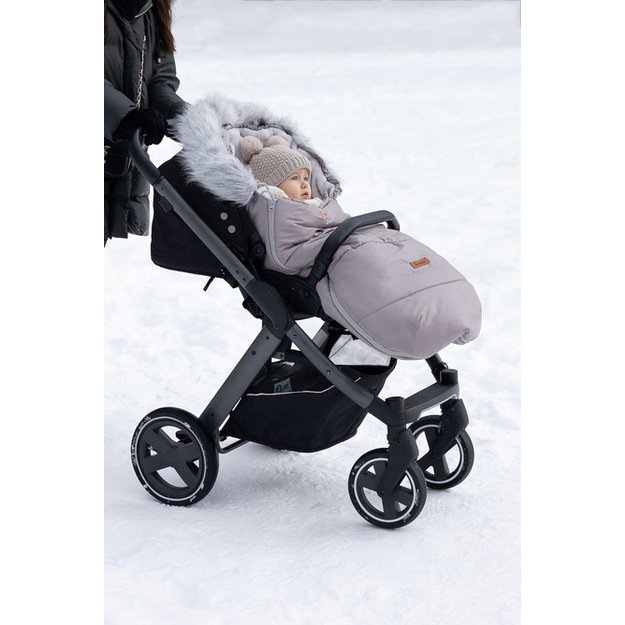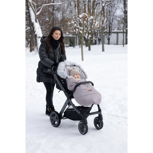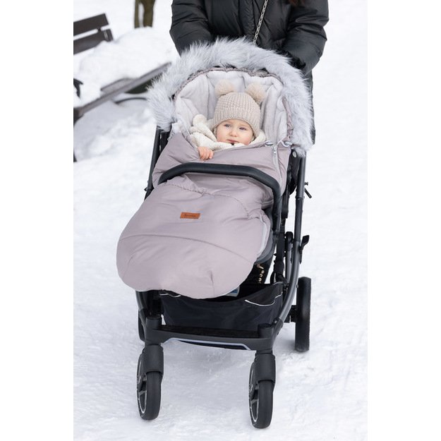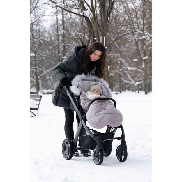 Orso romper bag turi vandeniui atsparų, lengvai valomą viršutinį sluoksnį su estetišku dygsniavimu. Viduje yra minkšto poliarinio vilnonio audinio sluoksnis. Purios, antialerginės neaustinės medžiagos sluoksnis užtikrina veiksmingą apsaugą ir komfortą. Dirbtinis kailis prie gobtuvo, kurį galima atsegti, suteikia išskirtinę išvaizdą. Romperio krepšys tinka bet kokio stiliaus stumdomoms kėdutėms. Jį galima naudoti vaikiškuose vežimėliuose, vežimėliuose ir rogutėse. Jame yra skylės diržams ir užtrauktukas per visą ilgį.