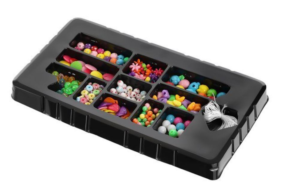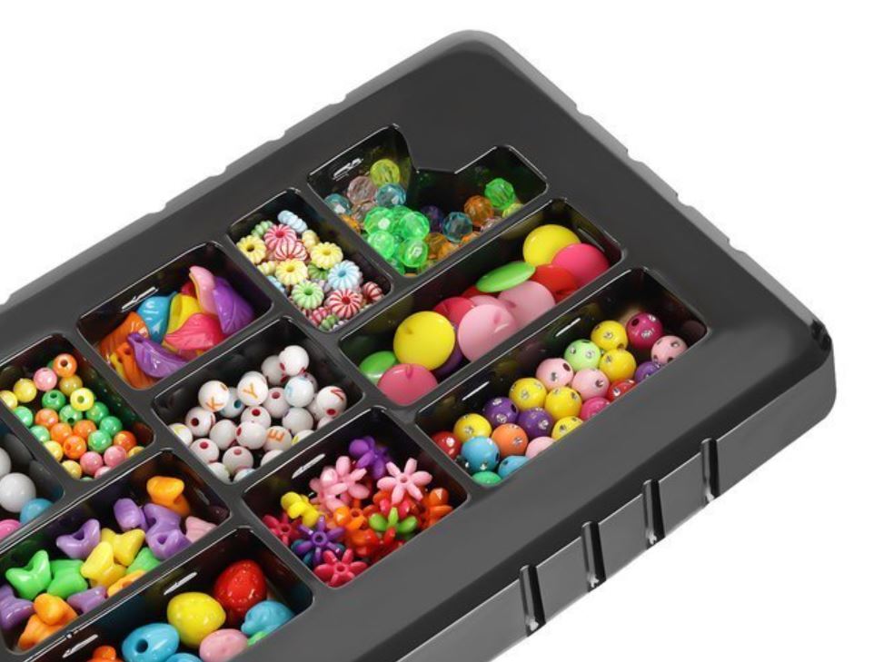 Ivairiu karoliukų rinkinys papuošalams gaminti leis vaikui sukurti pasakiškai spalvingas įvairių formų ir įvairiausiu motyvų apyrankes.