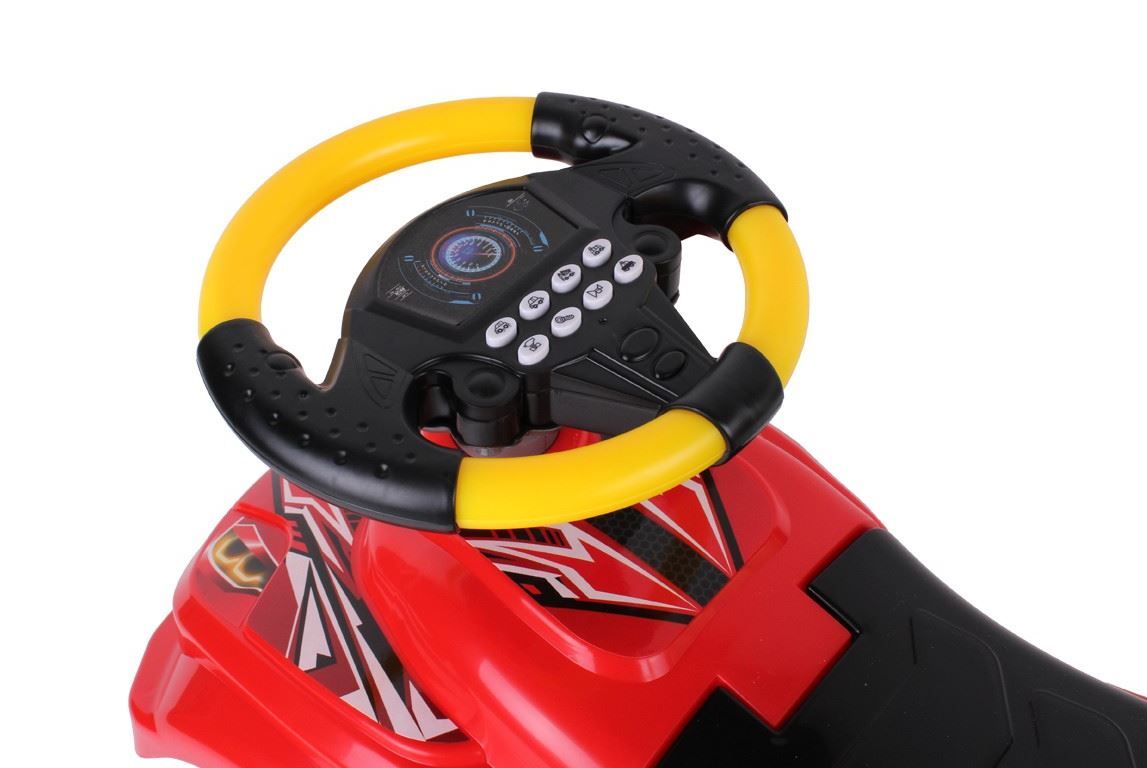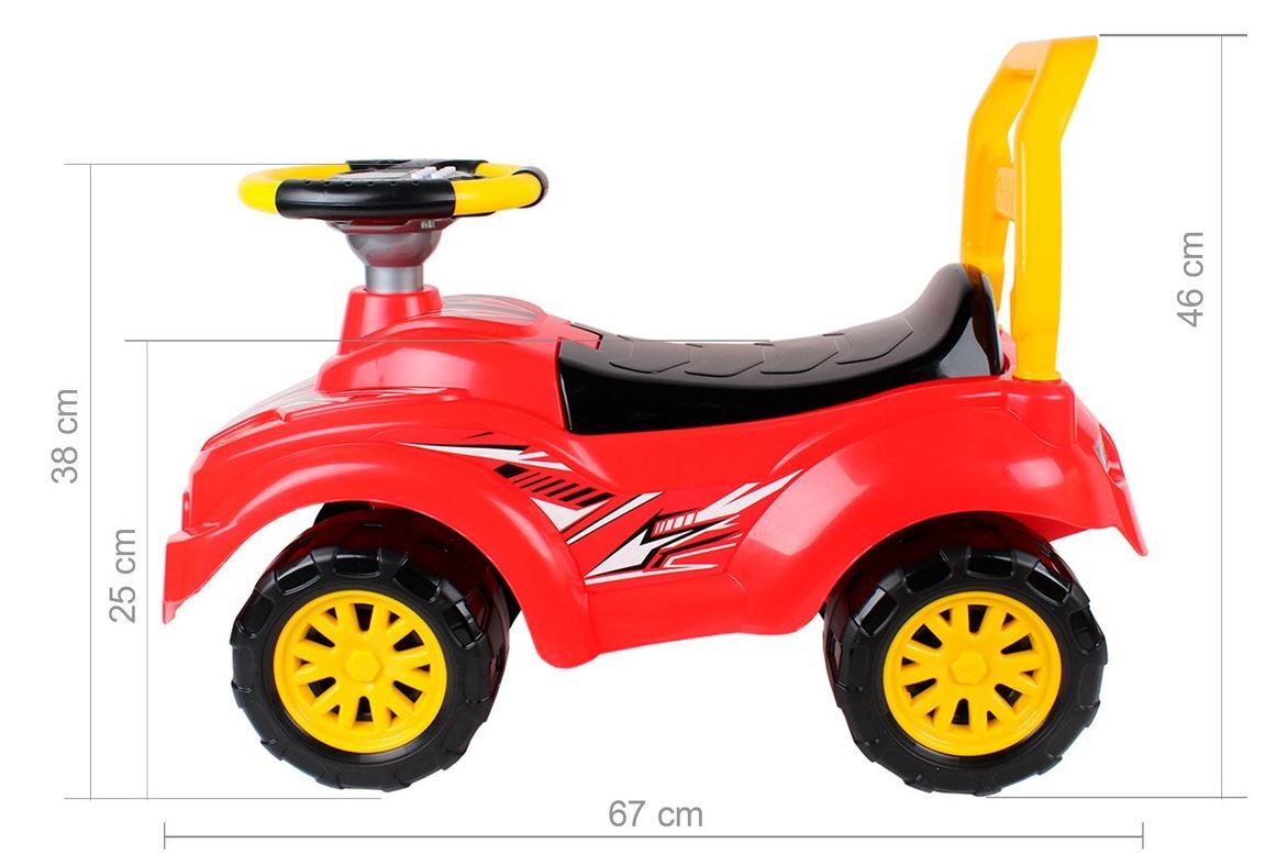 Ši užsėdamoji mašina - paspirtukas tai puikus žaislas mažiems, tik pradėjusiems vaikščioti. Tvirtas dizainas, stambūs ratai suteikia papildomo stabilumo, taipogi tvirta ir patogi nugaros atrama leis mažyliui saugiai ir linksmai važinėtis. Po sėdyne yra vietos daiktams