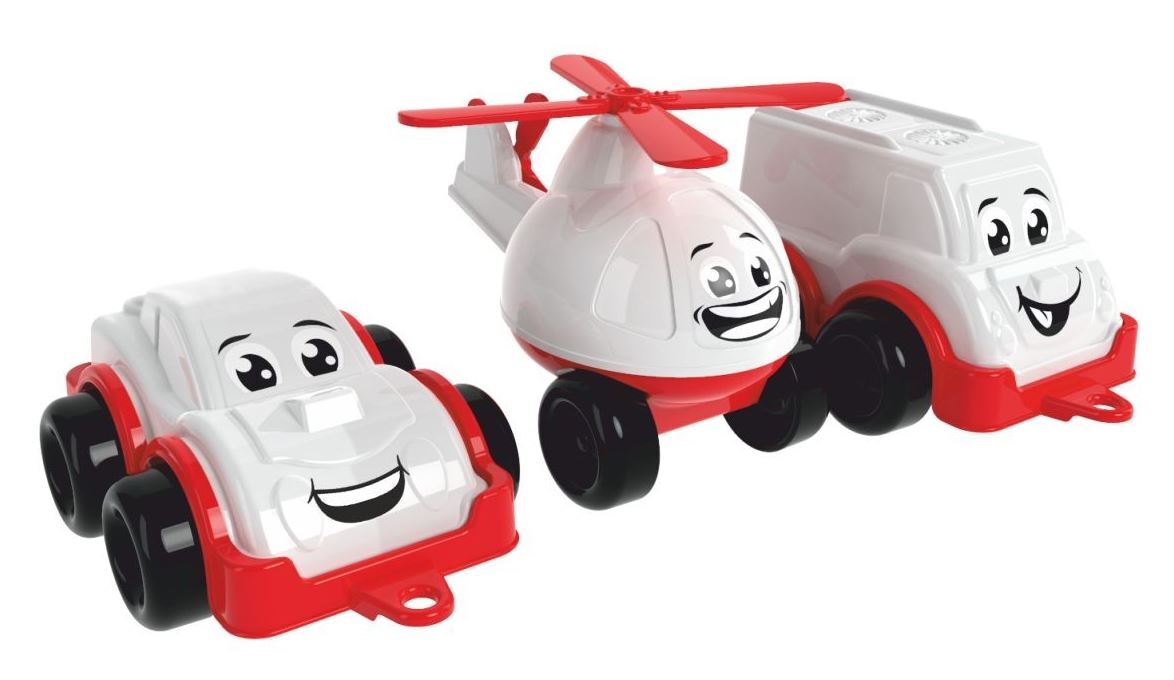 Į komplektaciją įeina automobilis, mikroautobusas ir rotorinis lėktuvas. Tokia automobilių komanda visada ateis į pagalbą žaislų draugams. Yra žinoma, kad pasakų vaidmenų žaidimai lavina vaikų vaizduotę, vaizduotę ir mąstymą. Mažus automobilius patogu pasiimti su savimi pasivaikščioti ar žaisti namuose.