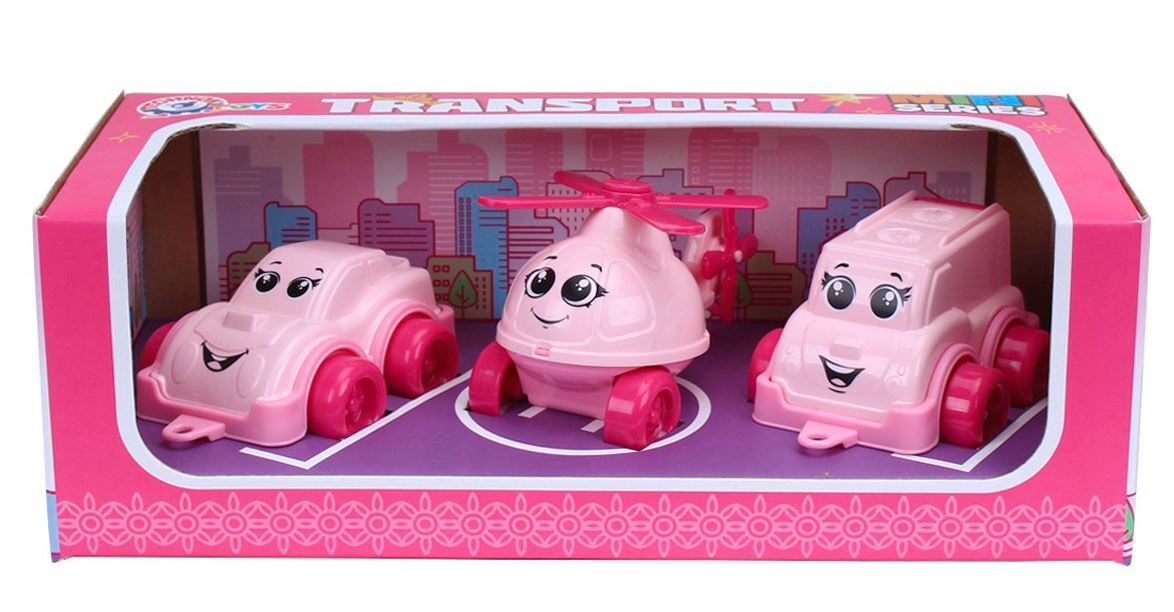 Į komplektaciją įeina automobilis, mikroautobusas ir rotorinis lėktuvas. Tokia automobilių komanda visada ateis į pagalbą žaislų draugams. Yra žinoma, kad pasakų vaidmenų žaidimai lavina vaikų vaizduotę, vaizduotę ir mąstymą. Mažus automobilius patogu pasiimti su savimi pasivaikščioti ar žaisti namuose.