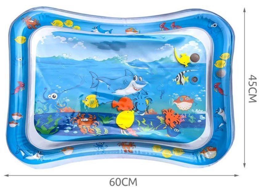 Spalvotas kilimėlis, kurį galima pripūsti oru ir pripildyti vandens. Su vandens gyvūnais, kurie sudomins kiekvieną mažylį. Kilimėlis užtikrins tinkamą vaiko vystymąsi. Puikiai tinka kaip dovana. Pagaminta iš patvaraus plastiko.