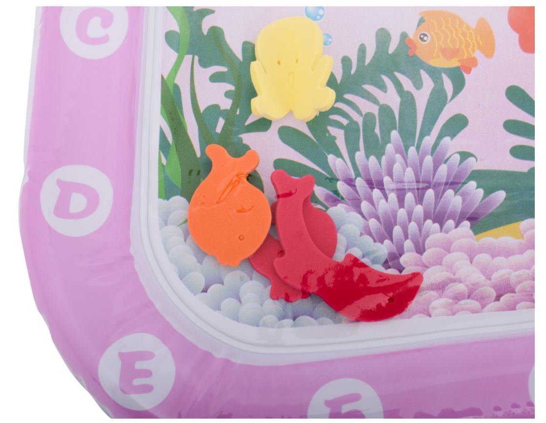 Kilimėlio viduje yra spalvingų vandens gyvūnų, kurie judės veikiami vaiko judesių.
