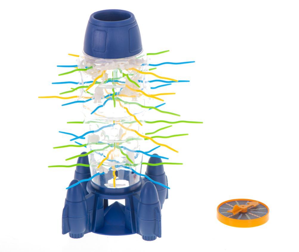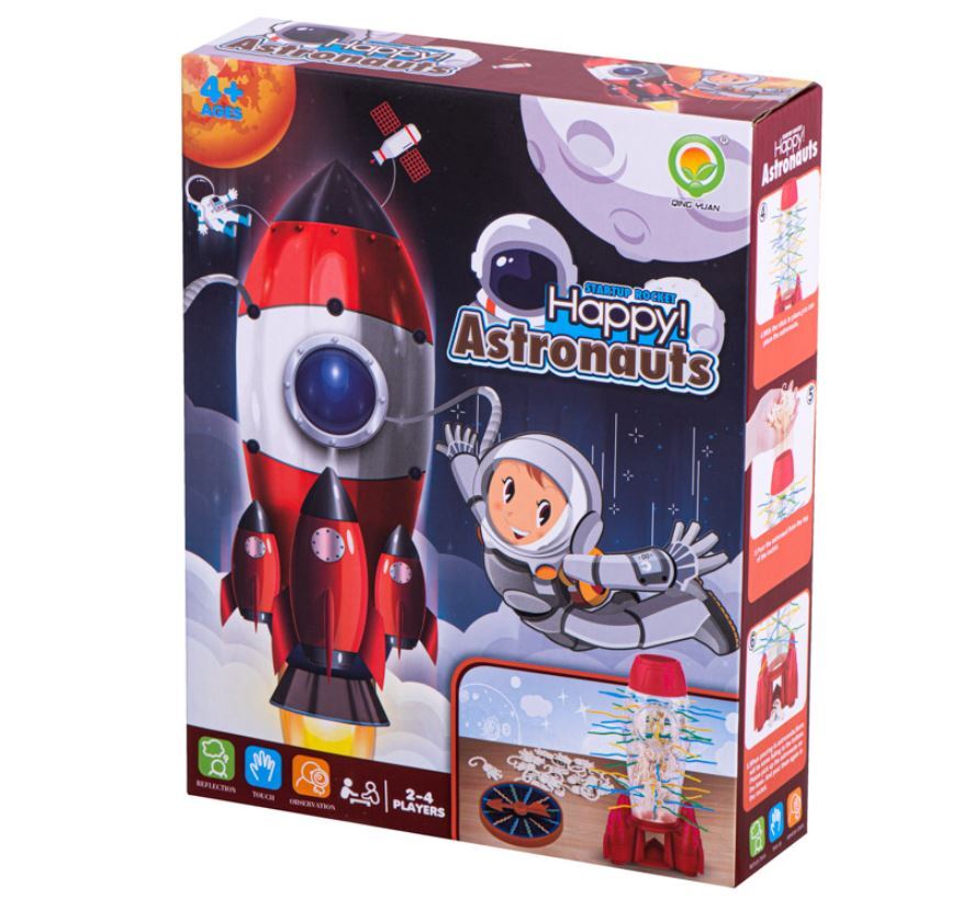 Naujas kosmoso stalo žaidimas. Žaidimo tikslas – nuimti visas lazdas, kad nuo raketos nukristų kuo mažiau astronautų. Medžiaga: plastikas.