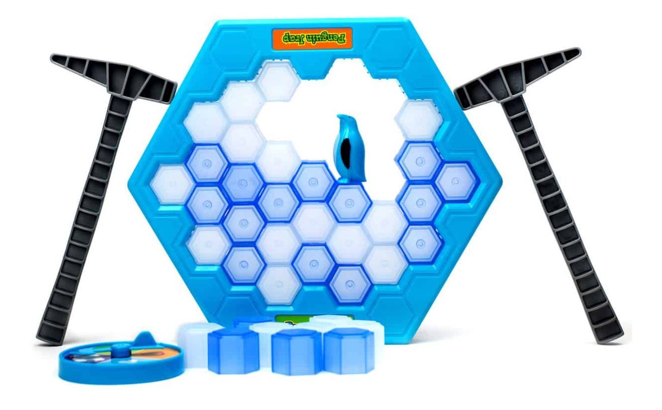 Žaidimo metu žaidėjai turi naudoti plaktukus, kad sulaužytų ledo lytį, ant kurios stovi pingvinas.