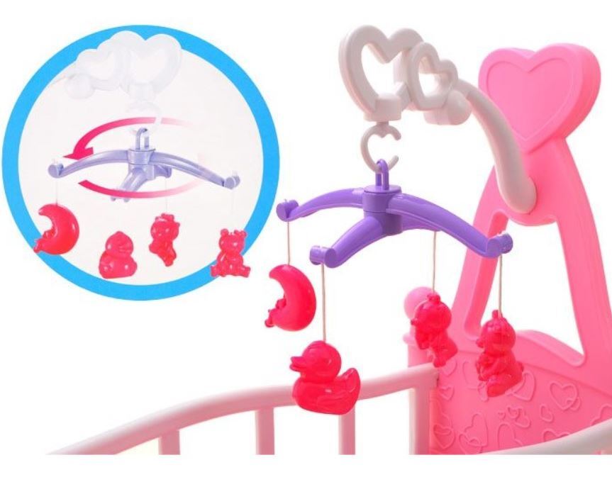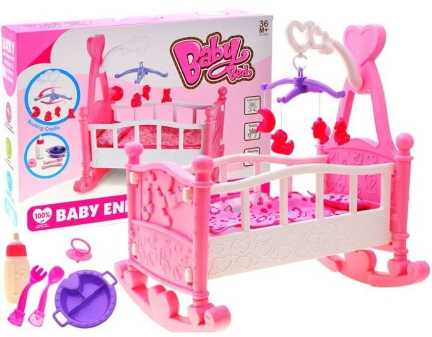 Šiame rinkinyje rasite ne tik įspūdingo grožio lovelę, bet ir medžiaginę antklodę su pagalve bei keletą priedų lėlės priežiūrai: maitinimo buteliuką, maisto indelį su skyreliais, čiulptuką.