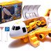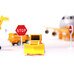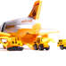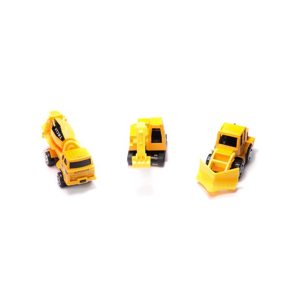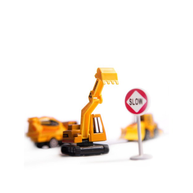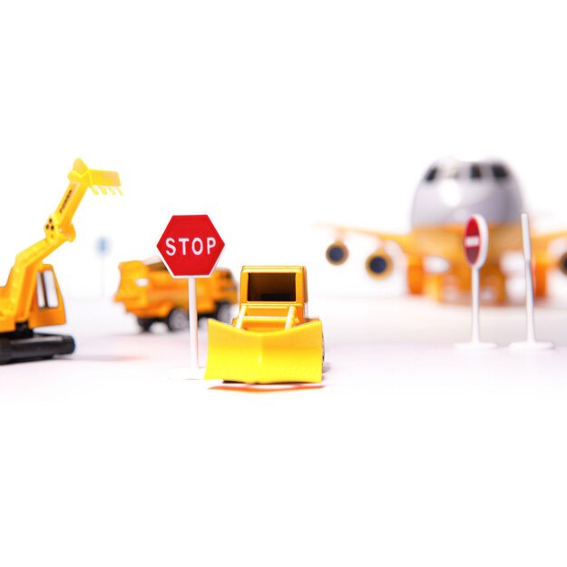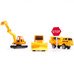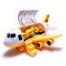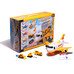 Statybinių transporto priemonių rinkinys dideliame lėktuve su judančiomis dalimis. Rinkinį sudaro ekskavatorius, betono maišyklė, buldozeris ir 7 kelio ženklai. Lėktuvas turi keturis skirtingus garso signalus ir LED lemputes. Matmenys: lėktuvo - 30x25x14 cm, automobilių - 7,5x2,5x2,5x2,5 cm.