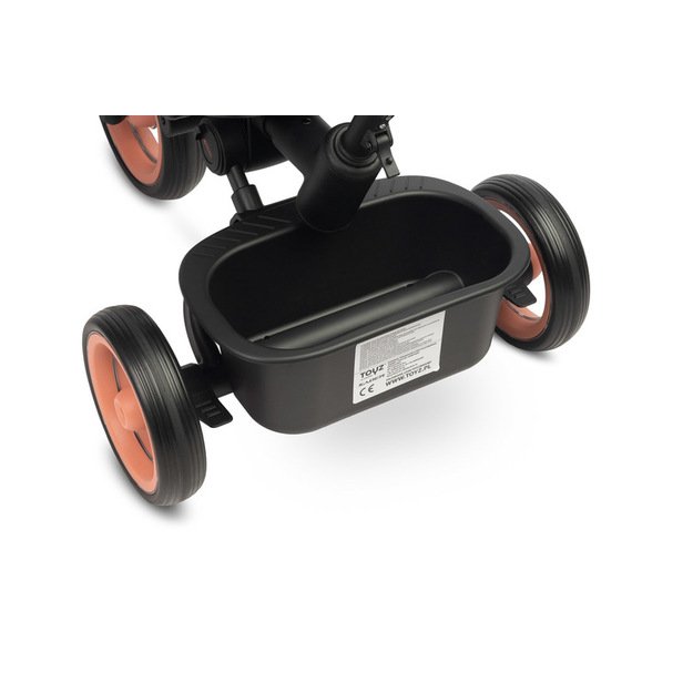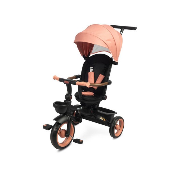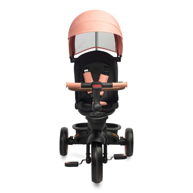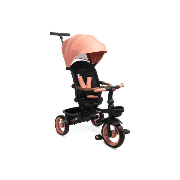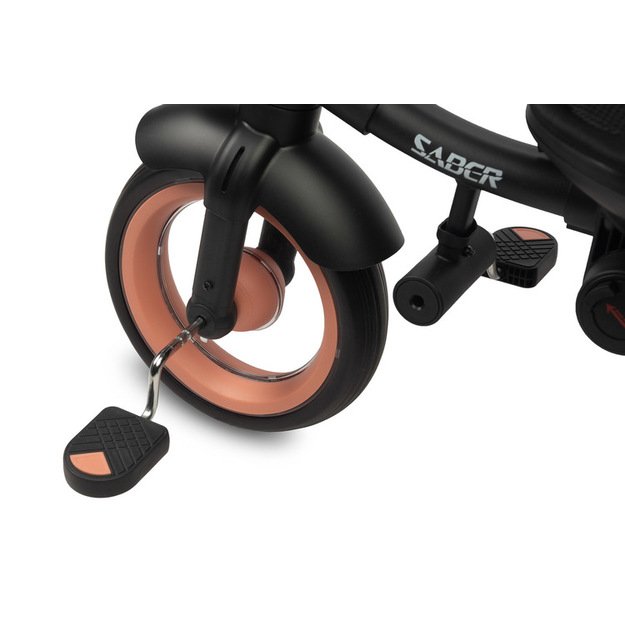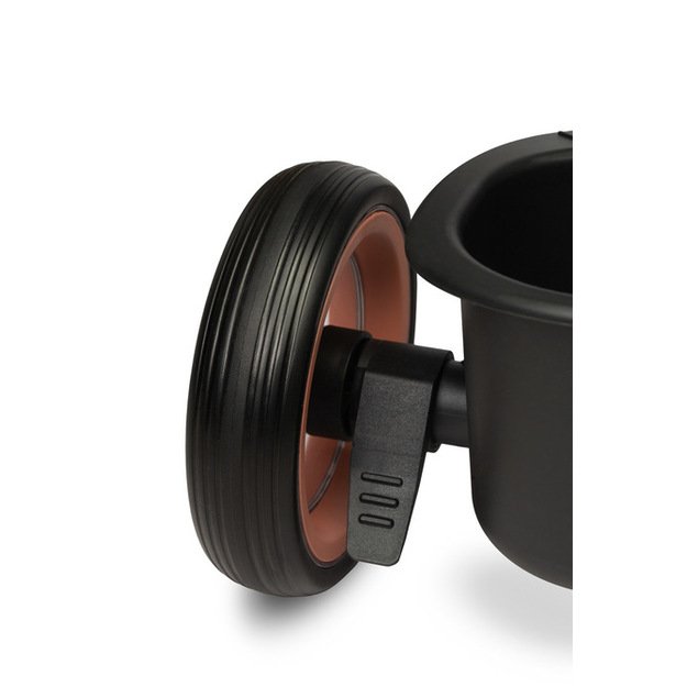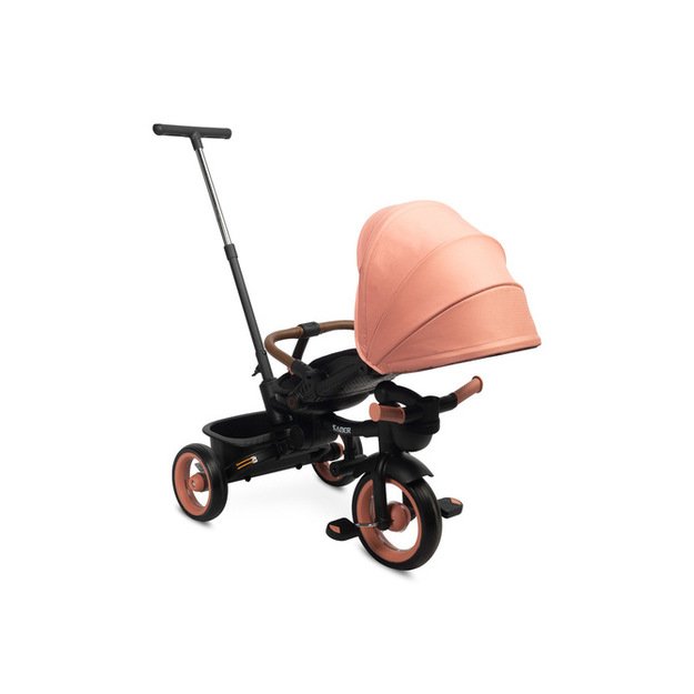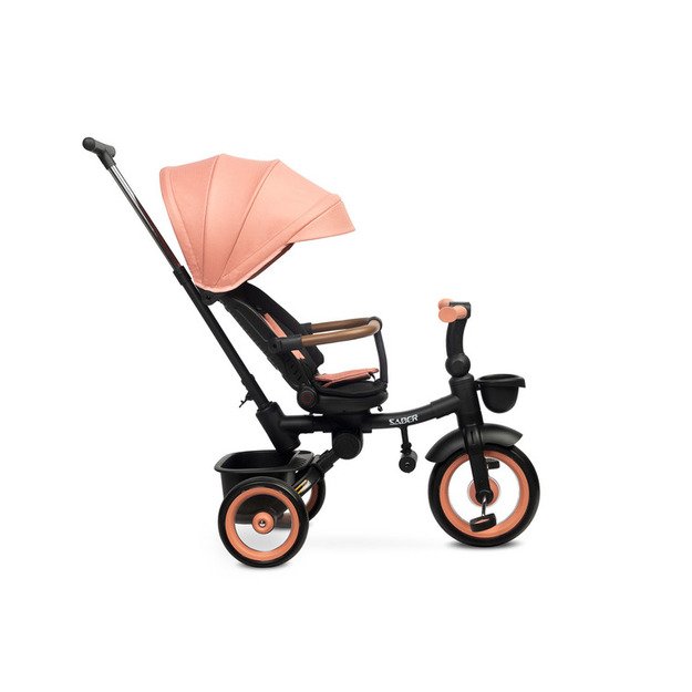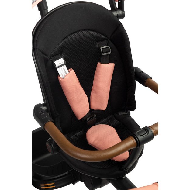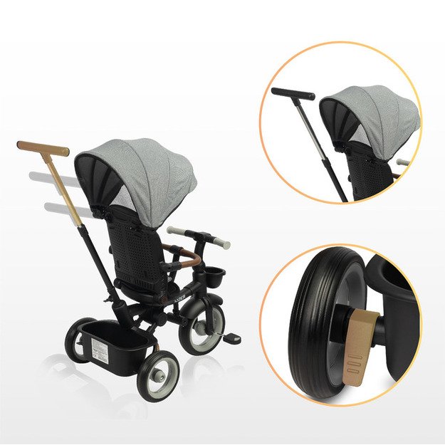 Full control over the vehicle is ensured by additional, independent foot brakes located at the back. Threestage height adjustment of the handle (88-97 cm) provides parent comfort, allowing them to adjust the settings to their height.
