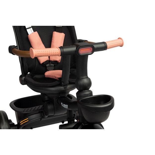 At Saber, comfort and safety are a priority. Three-point harnesses and a protective bar ensure safe play and a peaceful sleep for the child during walks. Reflective stickers and a front LED lamp improve visibility during evening strolls.