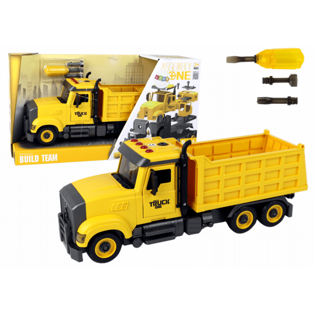 Frikcinė pavara užtikrina paprastą ir dinamišką sunkvežimio judėjimą. Be to, rinkinyje yra atsuktuvas su 2 keičiamais antgaliais, kuris leis interaktyviai žaisti ir eksperimentuoti.