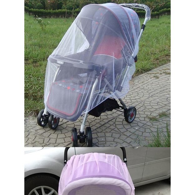 Elastingas vežimėlio tinklelis nuo uodų, apsaugo nuo vabzdžių, tačiau kartu yra ir itin pralaidus orui bei neriboja matomumo.