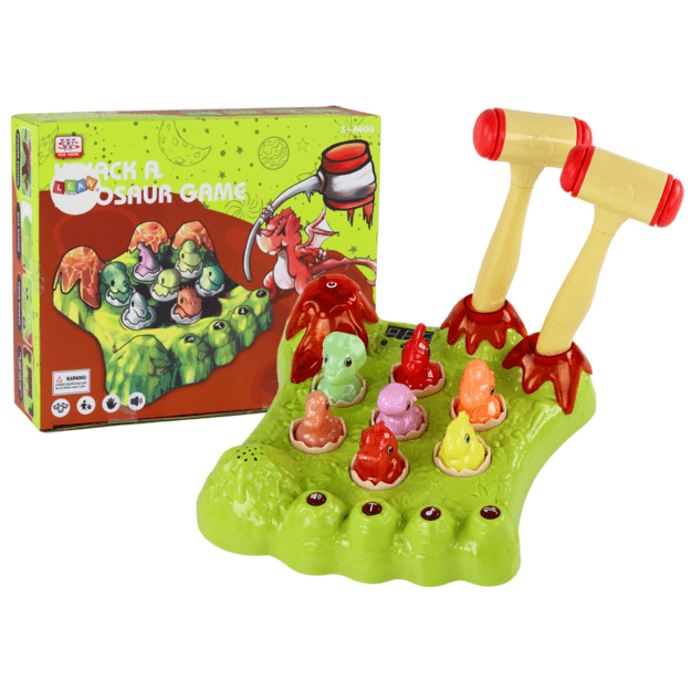 Be to, pridedami du tvirti plaktukai, todėl žaidimu galite mėgautis su draugu ar broliu ar seserimi. Šie plaktukai buvo specialiai sukurti žaidimo tikslams, kad užtikrintų tvirtą sukibimą ir tikslius smūgius į lentoje esančius dinozaurus.