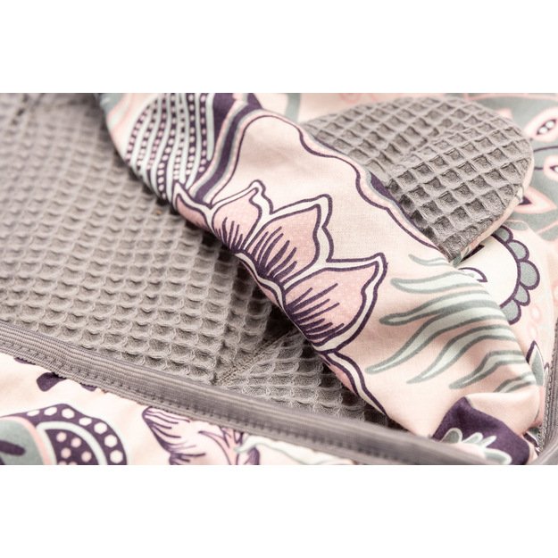 Vaflinis nešiojamasis lopšys-lovelė sukurtas patiems mažiausiems vaikams. Ji patogi ir tikrai praktiška kelionių metu. Tai alternatyva šiltiems vaikiškiems drabužėliams. Dėl skylučių 3 taškų diržams ji tikrai funkcionali – nereikia atsegti diržų, kad atidengtumėte kūdikį nešioklėje. Antklodė turi reguliuojamą gobtuvą su mielomis ausytėmis. Ji pagaminta iš 100 % medvilnės.