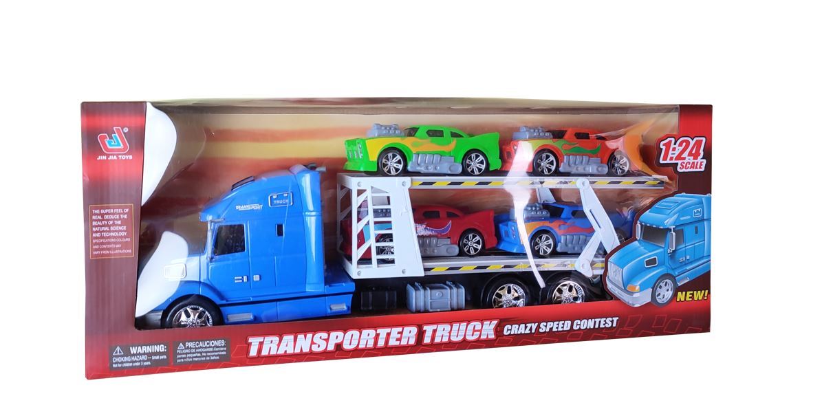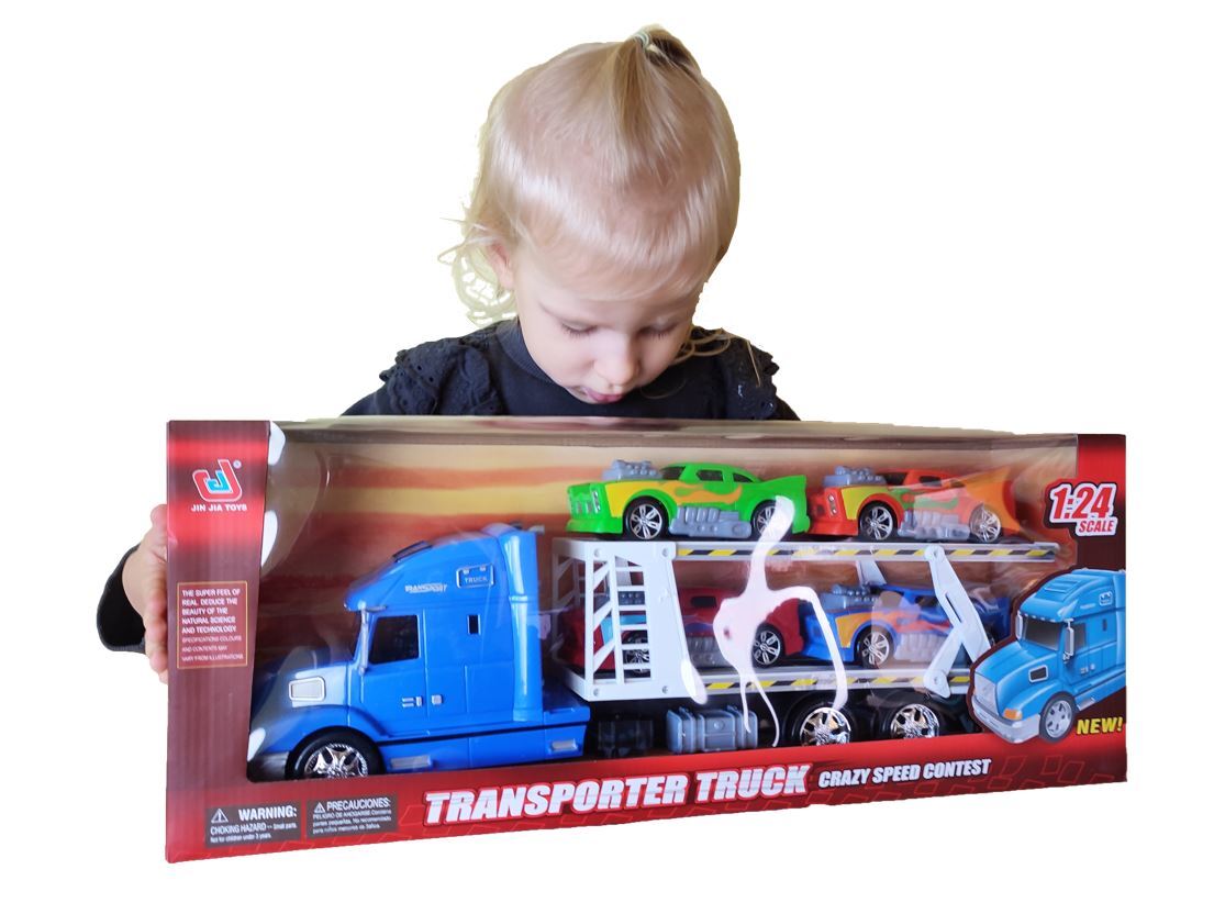 Žaislinis tralas su 4 automobiliais (mėlynas)