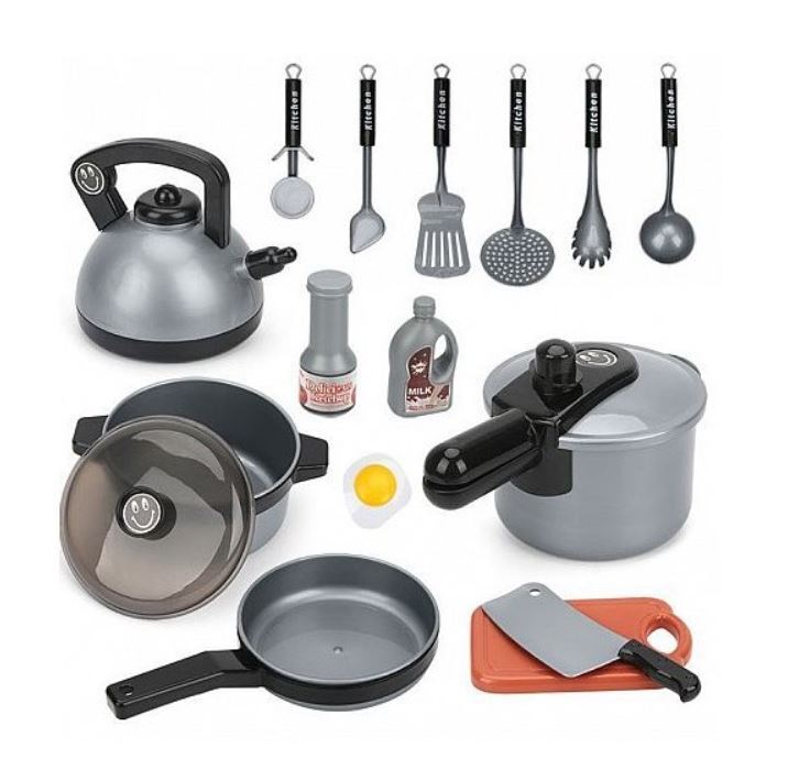 Šis rinkinys pravers kiekvienoje mažo virėjo namų virtuvėje. Puikiai tinka virti vakarienę lėlėms ir meškiukams. Produktas lavina vaizduotę ir rankinius įgūdžius. Suteikia daug džiaugsmo ir smagių prisiminimų.